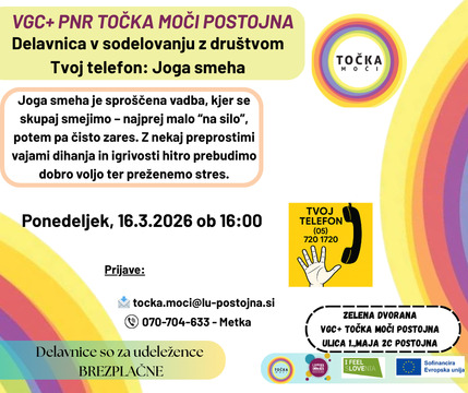 Vabljeni v VGC+ točko moči Postojna na JOGO SMEHA.
