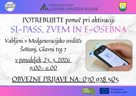 Digitalne storitve postajajo del vsakdanjega življenja, zato vam želimo pomagati, da jih boste lahko uporabljali brez skrbi. Vabljeni, da se udeležite delavnice na kateri vam bomo pomagali pri aktivaciji državnih elektronskih storitev in razlagi, kako le te uporabljati.