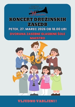 V petek, 27. marca 2026, ob 18. uri bodo v Dvorani ZGŠ Maestro v Gornji Radgoni zazvenele čudovite melodije družinskih glasbenih zasedb. Vljudno vabljeni, da skupaj z nami doživite prijeten glasbeni večer!