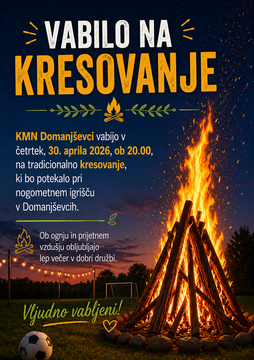Klub malega nogometa Domanjševci vabi na tradicionalno kresovanje ob igrišču v Domanjševcih.Vabljeni!