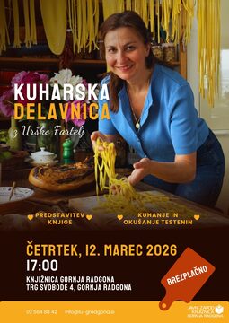Vabljeni na kuharsko delavnico z Urška Fartelj, kjer bomo ob predstavitvi njene knjige skupaj kuhali in okušali različne testenine. Dogodek ponuja priložnost za nova kulinarična znanja, praktične nasvete in prijetno druženje.Udeležba je brezplačna.