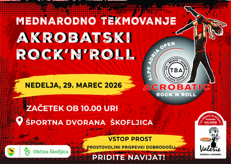 V nedeljo, 29. marca 2026 , bo v Športni dvorani Škofljica potekalo mednarodno tekmovanje v akrobatskem rock’n’rollu – Alpe Adria Open. Tekmovanje se začne ob 10.00 uri.