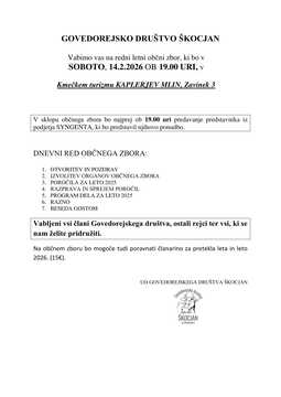 Annual General Assembly of the Skocjan Cattle Breeding society.INVITATION IN ATTACHMENT!