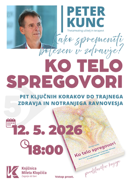 Predaval bo Peter Kunc, učitelj ThetaHealing-a in avtor nedavno izdane knjige Ko telo spregovori – pet ključnih korakov do trajnega zdravja in notranjega ravnovesja. Knjigo si lahko izposodite v naši knjižnici.