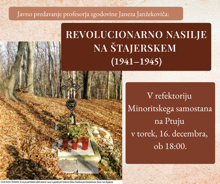 Vabljeni na javno predavanje profesorja zgodovine Janeza Janžekoviča z naslovom Revolucionarno nasilje na Štajerskem (1941-1945).