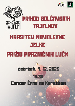 V četrtek, 4. decembra 2025, ob 18.30 bomo skupaj pozdravili prihod solčavskih tajflnov, nato pa okrasili novoletno jelko ter slovesno prižgali praznične lučke, ki bodo razsvetlile naše kraje. Vljudno vabljeni!