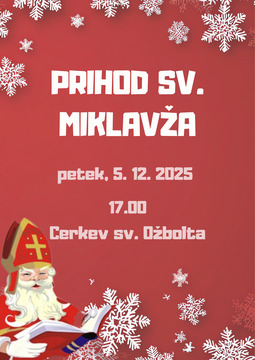 Vabljeni, da skupaj s svojimi otroki in vnuki obiščete sv. Miklavža v cerkvi sv. Ožbolta. Naj bo srečanje priložnost za veselje, dobroto in skupne trenutke, ki ogrejejo srce.