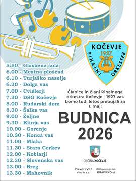 Pihalni orkester Kočevje - 1927 nas bo tudi letos prebujal za 1. maj.Kdaj in kje pa v priloženem plakatu.