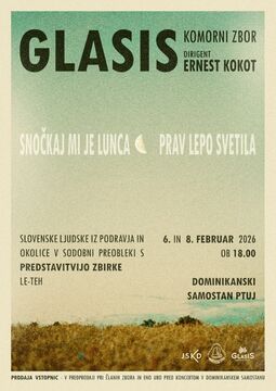 Vabljeni, da se nam 6. in 8. februarja ob 18.00 v Dominikanskem samostanu Ptuj pridruลพite na naลกem koncertu, kjer bodo ljudske pesmi iz Podravja in okolice zaลพivele v sodobni zborovski podobi.