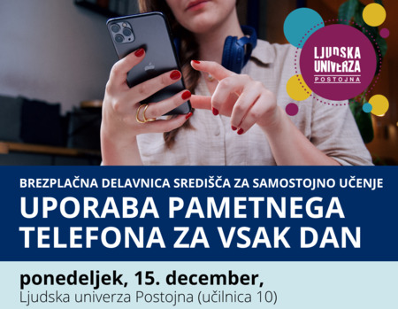 Želite iz svojega telefona izvleči več in ga uporabljati bolj samozavestno? Na nadaljevalni delavnici bomo nadgradili osnovno znanje ter spoznali funkcije, ki olajšajo organizacijo in komunikacijo, kot so urejanje stikov, pošiljanje fotografij in glasovnih sporočil, uporaba koledarja, zemljevidov in opomnikov ter osnovna digitalna varnost. Delavnica je primerna za vse, ki že poznajo osnove ali želijo svoje znanje osvežiti in nadgraditi.