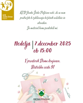 KUD Janko Živko Poljčane vas z veseljem vabi, da se nam pridružite na ustvarjalni delavnici izdelovanja božičnih voščilnic in okraskov.