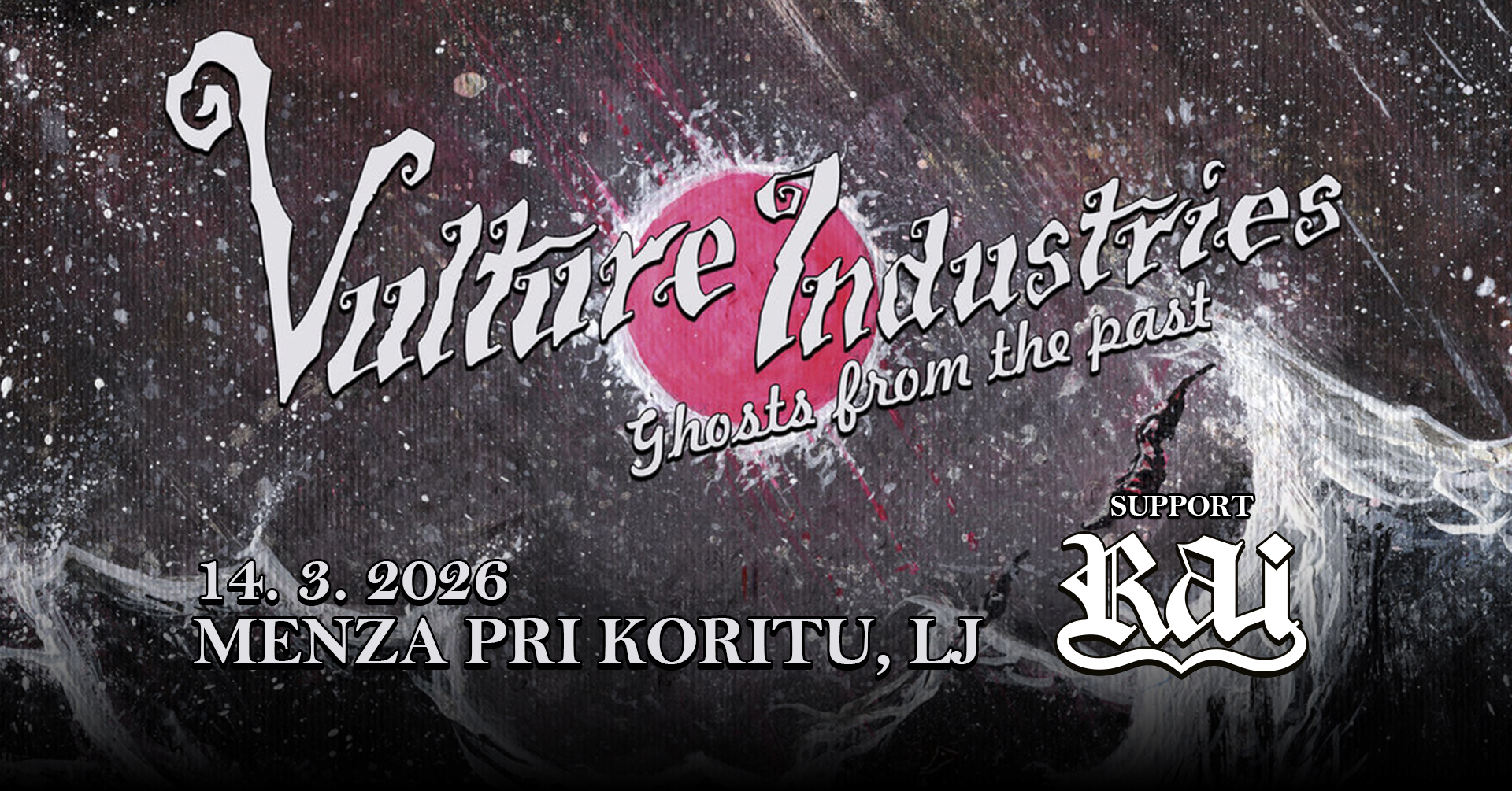 Ena najbolj edinstvenih in gledališko razgibanih avant-metal zasedb, Vulture Industries, se 14. marca 2026 vrača v Ljubljano! Menza pri koritu bo za eno noč postala prizorišče temačne dramatike, eksperimentalnih zvočnih pokrajin in neponovljive odrske energije, po kateri je bend že dolgo znan.