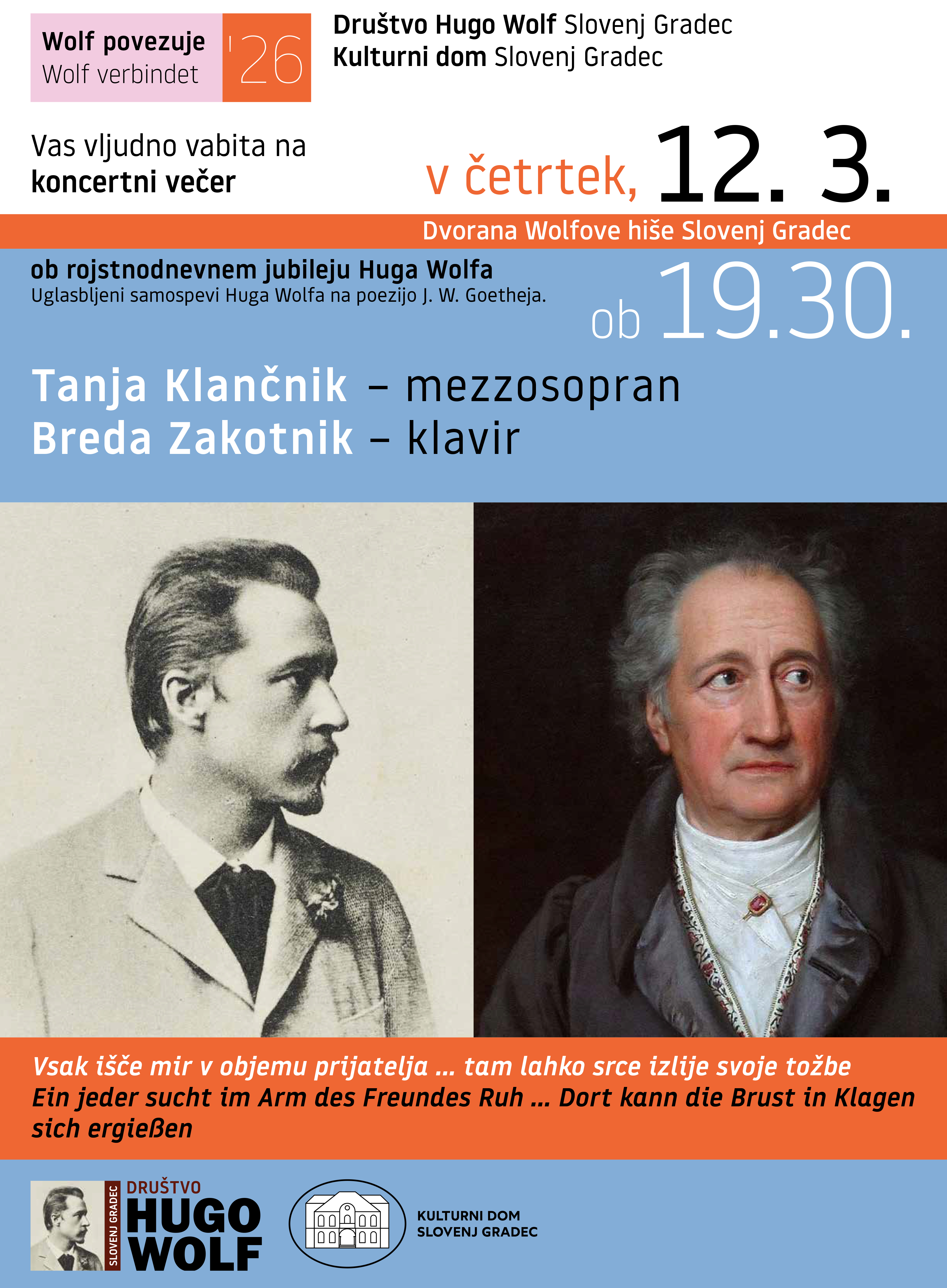 Hugo Wolf je uglasbil 51 pesmi Goetheja, največ v ustvarjalno izredno bogatem letu 1888. Med drugim se tokrat posebej posvetimo dvema vlogama tega romana.